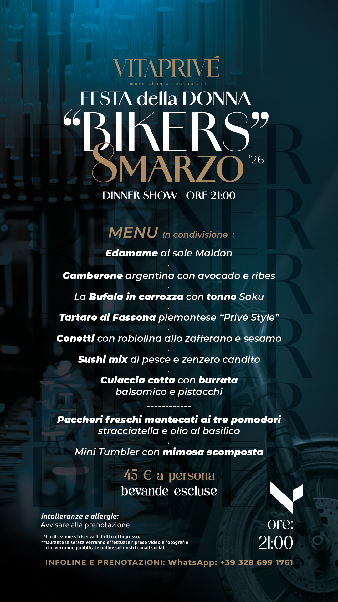 8 Marzo · VITA Privè · Dinner Show